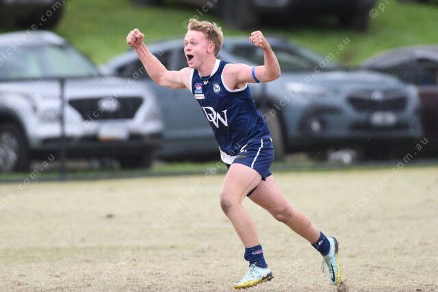 Harry Lees (11 Dandenong West) kicks first of two goals in the last quarter. 499261_17