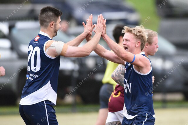 Harry Lees (11 Dandenong West, right) kicks first of two goals in the last quarter. 499261_19