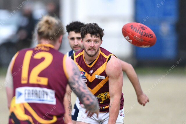 Bobby-Lee Smith (28 Lyndale) passes the ball to teammate Jackson Collard (12, left). 499261_29