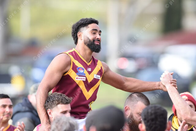 Lyndale player is carried off at the end of the game. I am fairly sure this is Adjei Boahene (5 Lyndale). 499261_41