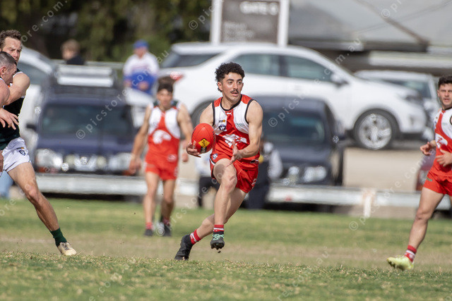 Mathew Camera receives the ball in the midfield for Robinvale Euston.