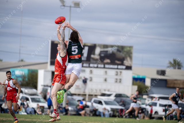 Noah Foster and Jayden Fox compete in the air during the second quarter.