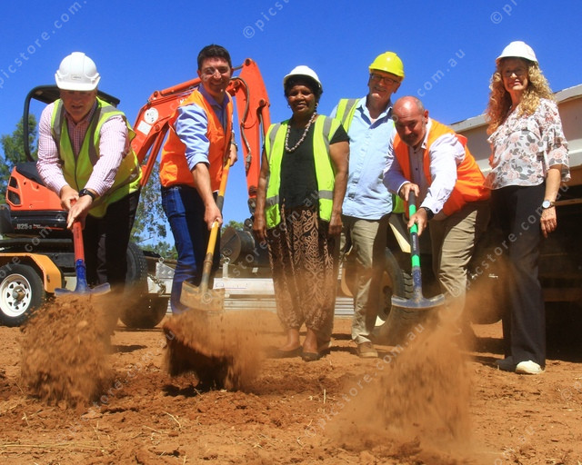 SOD TURNING: Ministers and VIP’S turn the first sods on the new social housing project. (PIC: PHIL WILLIAMS 464815_03)