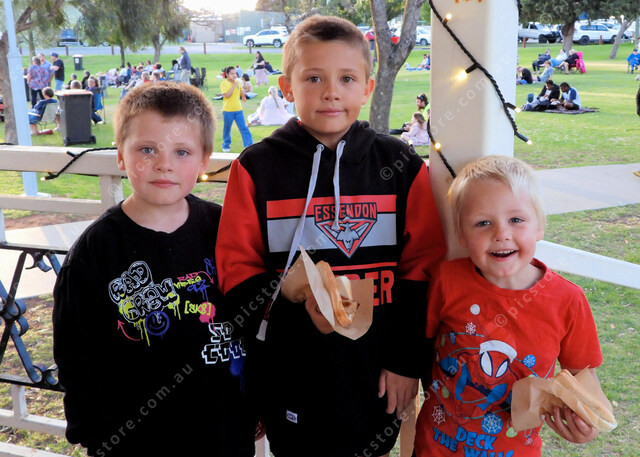 Sebastion, Niel and Klaus Medlyn celebrating Neil’s 9th birthday at the carols. Picture: Dianne Martin 524827_12