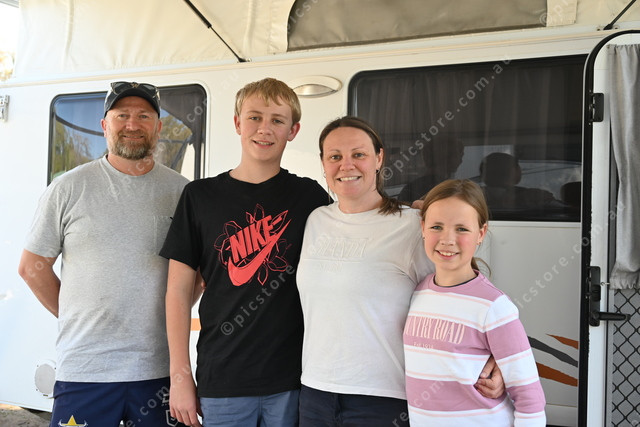 Bruce Williams and Blake, Kirsty and Gemma Peacock escaped Ararat’s 15 degree, rainy weather to sunny Swan Hill. 506952_03