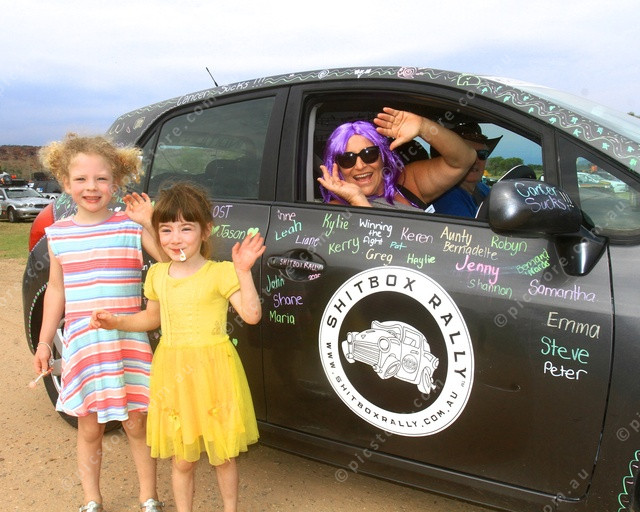 BYE: Amelia and Arla Mashford farewell the Kondition Krytical car as it leatves Blatherskite Park. (PIC: PHIL WILLIAMS 512919_21)