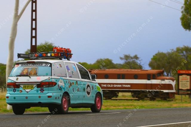 SAUCY: The Saucy Minxes make their way past the Old Ghan loco. (PIC: PHIL WILLIAMS 512919_23)