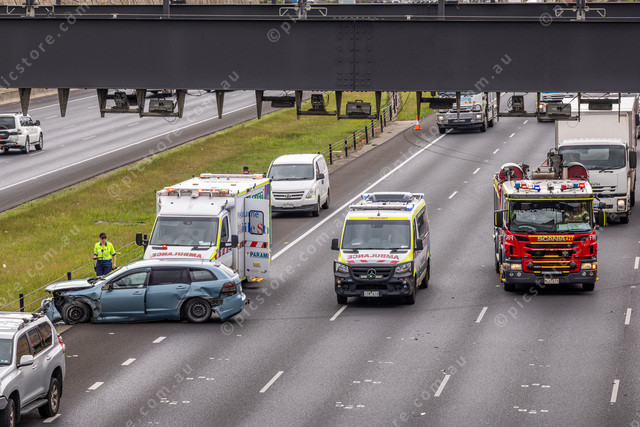 There was a crash on Eastlink Dandenong North. Photo’s taken from the Oakwood Ave bridge over Eastlink. Two lanes were blocked while all emergency services attended.