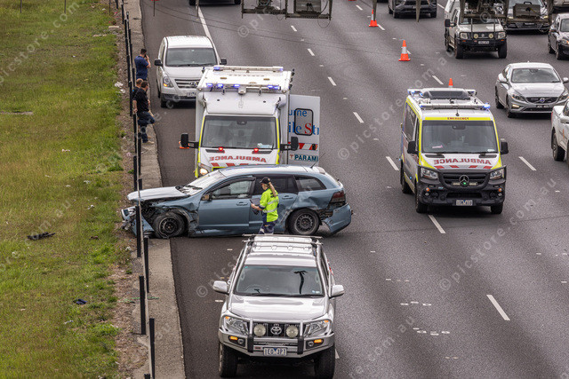 There was a crash on Eastlink Dandenong North. Photo’s taken from the Oakwood Ave bridge over Eastlink. Two lanes were blocked while all emergency services attended.