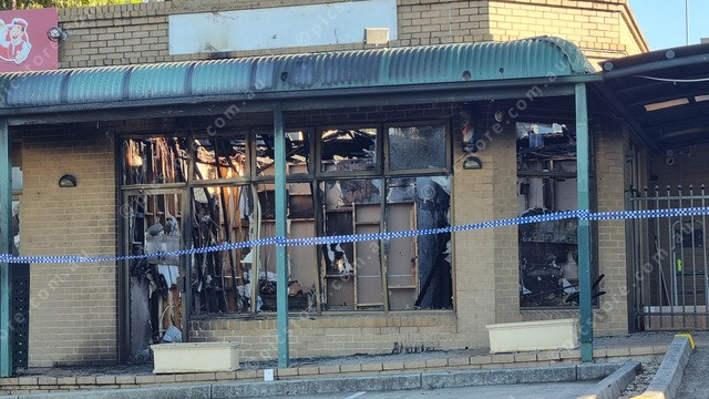 One of the gutted shop outlets after a suspicious fire off Raymond McMahon Boulevard, Endeavour Hills. (Cam Lucadou-Wells: 466341)