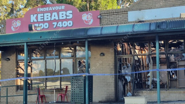 Two shops destroyed in a suspicious fire off Raymond McMahon Boulevard, Endeavour Hills. (Cam Lucadou-Wells: 466341)