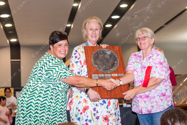 Perpetual Trophy Winner Kaye Howells (right), presented by Leanne Venables (left, President?) and Wendy Andrews (middle). 465847_02