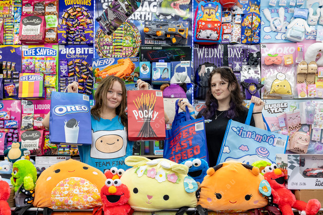 Gypsy and Lilly Zoubakin selling showbags.