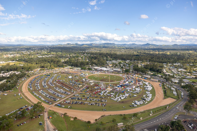Aerial view of the Gympie Show taken from Rainbow Beach Helicopters.