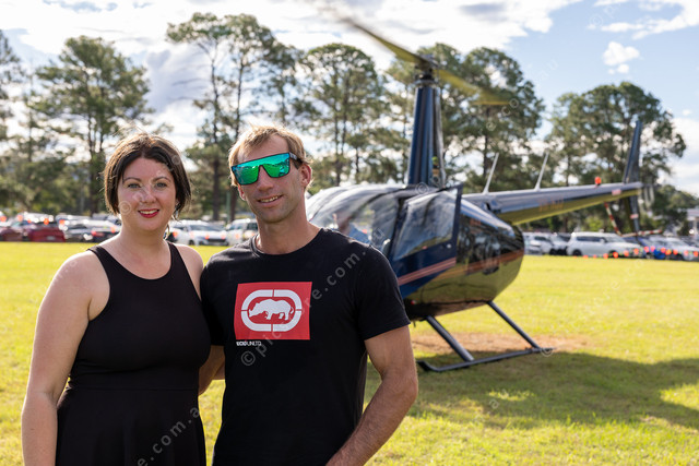 Melissa Springall and Sam Petersen after their helicopter ride.