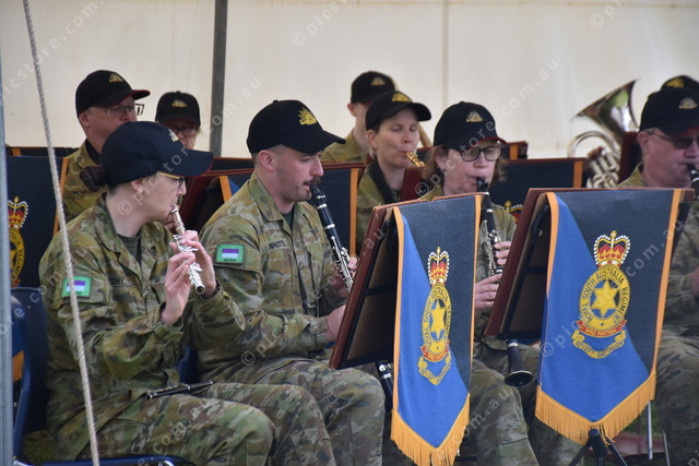 Members of the 10th/27th Battalion Royal South Australian Regiment band playing for the crowd. (498152)