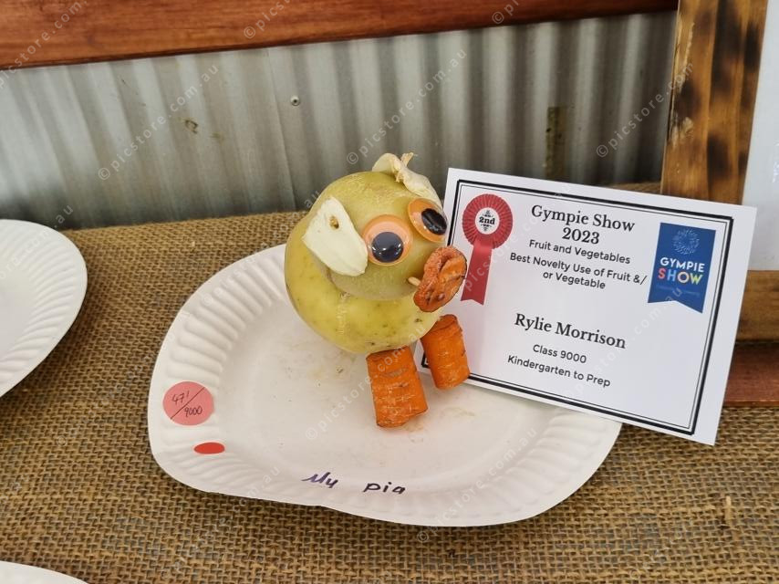 Rylie Morrison got second for his pig in the Novelty Fruit and Veg section for prep and kindergarten kids.