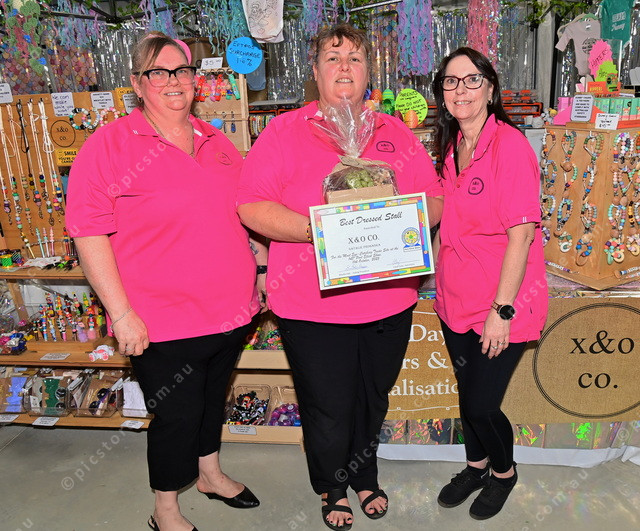 Karina Price, Natalie Prohaska and Denni Gouldie with their best dressed stall award. (512855_02).