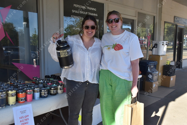 Jess Robinson checks out the range of water bottles alongside sister-in-law Jessica Robinson. (521116)