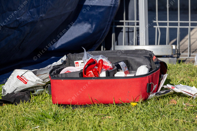 Not sure if this First Aid stuff was accidentally left behind by the Ambo’s? It was behind the SES gazebo.