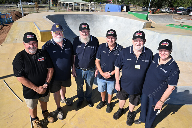 Romsey Lancefield Lions Club members have fund the new Romsey Skate Park. Pic of president Russell Neyland, Geoff Clarke, Les Saultry, Aalen Collins, Ged and Wendy McLaughlin. (Damjan Janevski). 534267_02