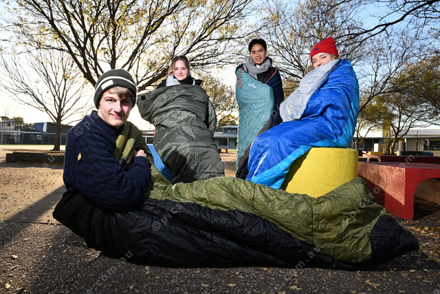 Winter Sleep-out at Emmanuel College, Point Cook. Pic of students: Sam, Maja, Matthew and Kayleigh. Photo by Damjan Janevski. 485343_04