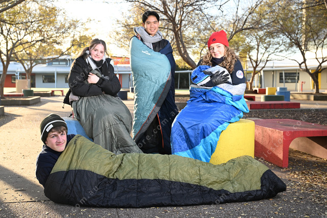 Winter Sleep-out at Emmanuel College, Point Cook. Pic of students: Sam, Maja, Matthew and Kayleigh. Photo by Damjan Janevski. 485343_05
