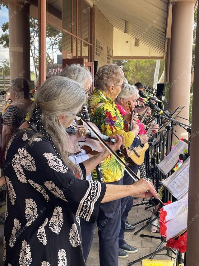Arts Now Here and Flinders Songs members performed on the verandah of the Northern Festival Centre at the 2025 Nyrstar Smelters Picnic (Neralie Bailey: 508731_09)