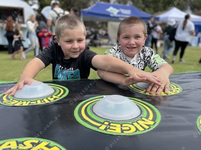 Jayce and Noah enjoyed the giant board games at the 2025 Nyrstar Smelters Picnic (Neralie Bailey: 508731_10)