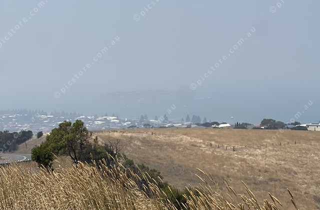 Smoke over Victor Harbor made it almost impossible to see Granite Island from the George Fisher Lookout on Waitpinga Hill on Monday, January 12. (Dani Brown: 528224_01)