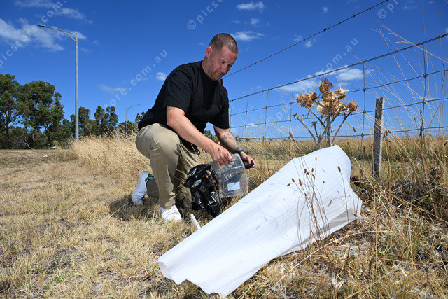Pic of Dwayne Kelly at the corner of Sneydes and Hacketts Road, Point Cook, collecting rubbish. (Damjan Janevski). 535401_03