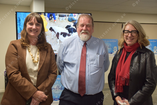 Councillor Morwenna Harslett and Mayor Melissa Hamilton chat to Paul Campbell about the excitement building for another year of snowflakes.