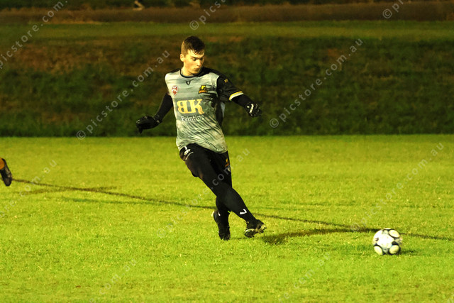 Berserker’s goalkeeper Justin Cowie passes out from the back.