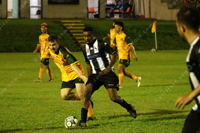 Nerimbera’s Owen Tari just gets past Berserker’s Ben Dingly.
