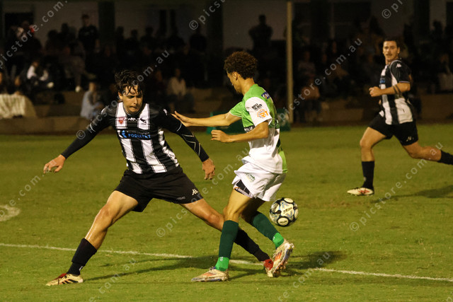 Nerimbera’s Rueben Wakefield makes a good tackle on Frenchville’s Jeremy McMahon.
