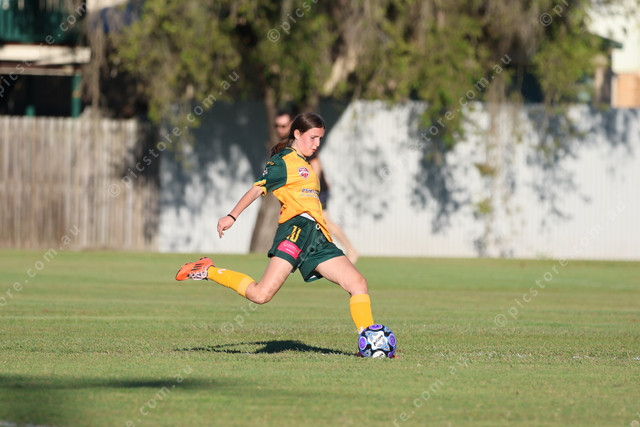 Berserker’s Dakota Schoeler look to send the ball upfield.