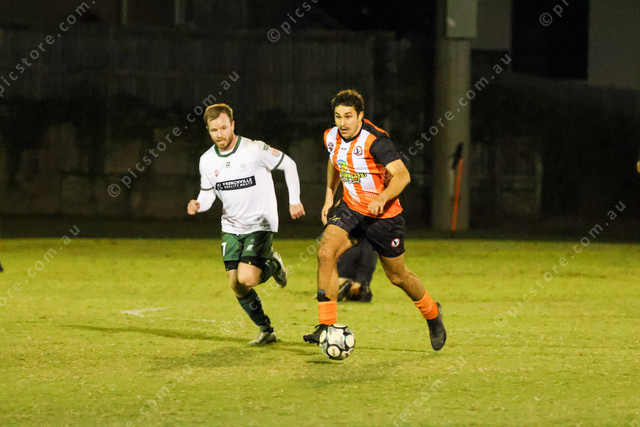 Capricorn Coast’s Marshall Wilson-Hewetson on the ball with Frenchville’s Jordan Miller in pursuit.