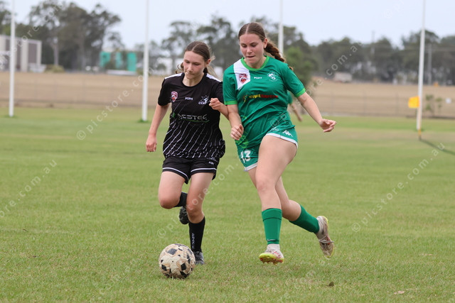 Clinton’s Alana Sailor and Central’s Claire Hill clash for the ball.
