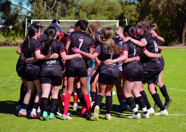 City players at the end of the 2025 FFS Senior Womens Grand Final match between Mildura City and Irymple Knights.
