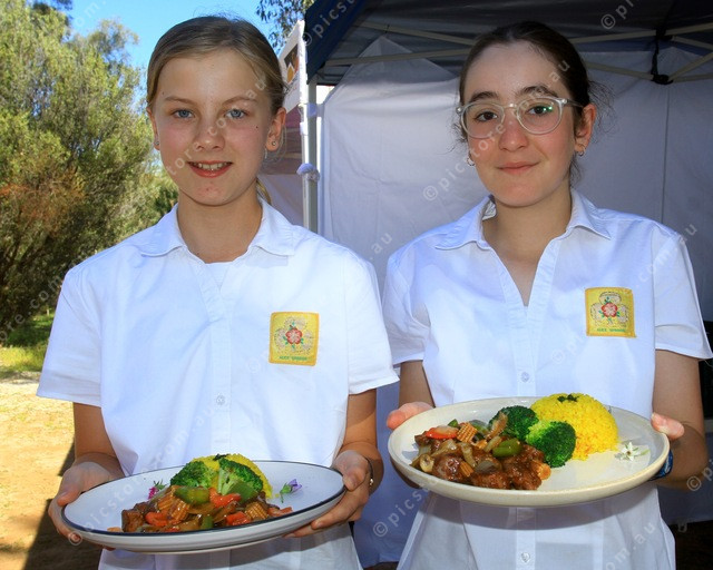 WAITRESSES: Guides Rachel and Tabitha deliverd meals to the Long Lunch diners. PIC: PHIL WILLIAMS 409663_15