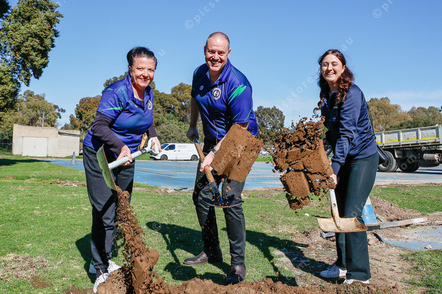 Gawler and District Tennis Association’s Jayne Polito and Damian McGee with Tennis SA development lead Jess Axisa. 497062_04