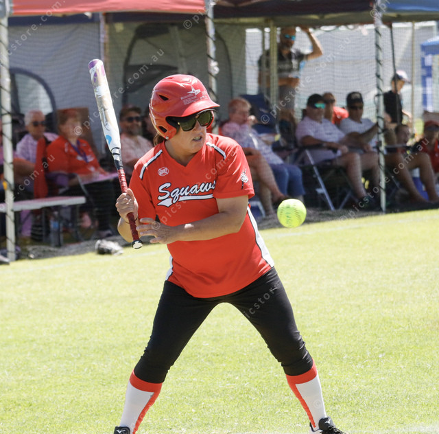 Squaws’ batter Tuesday Males looks to leave the ball during her bat. (463405_10)