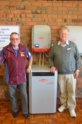 Pakenham Bowling Club past president Kevin Donald, Cardinia Shire mayor Jodie Owen and president Terry McRedmond. Picture: ALANA MITCHELSON.