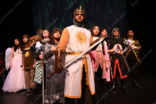 St Albans Secondary School production of Spamalot. Pic of students: Paul (front), Luca, Cindy, DT, Talia, Thien, Ryan and Xai. (Damjan Janevski). 495084_01