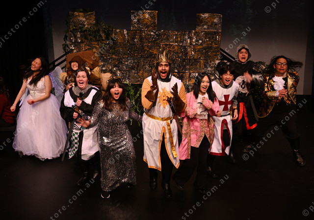 St Albans Secondary School production of Spamalot. Pic of students: Paul (front), Luca, Cindy, DT, Talia, Thien, Ryan and Xai. (Damjan Janevski). 495084_04