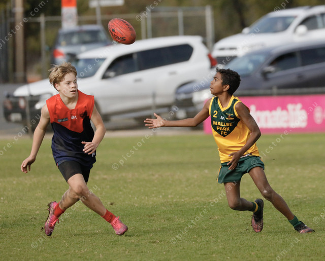 Wayback’s Koda Elefsen and Mallee Park’s Shadley Coffin chase the ball. (488022_25)