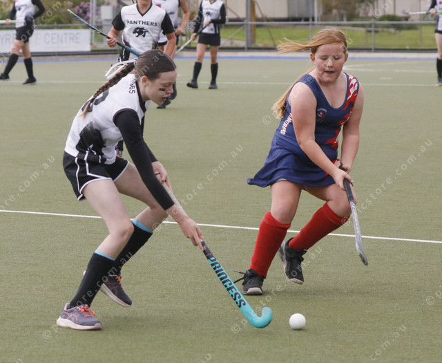 Panthers’ Evie Kannussaar and Wanderers’ Sophie Adams contest the ball. (500964_09)