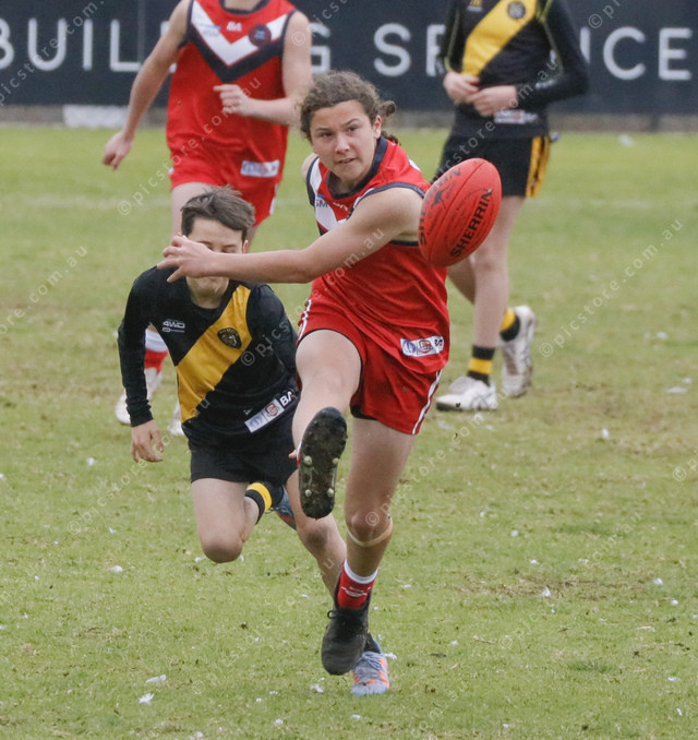 Lincoln Doley clears the ball for Tasman Imperial. (500964_12)
