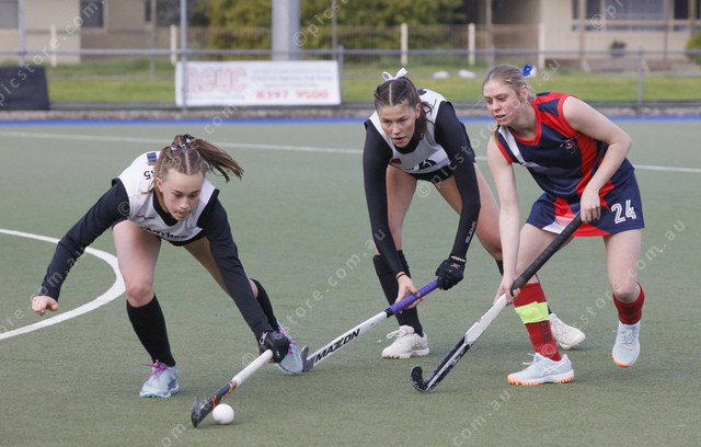 Panthers’ Laila Waller wins the ball as Kayla Higgins and Wanderers’ Tanisha Kilpatrick watch on. (500964_29)
