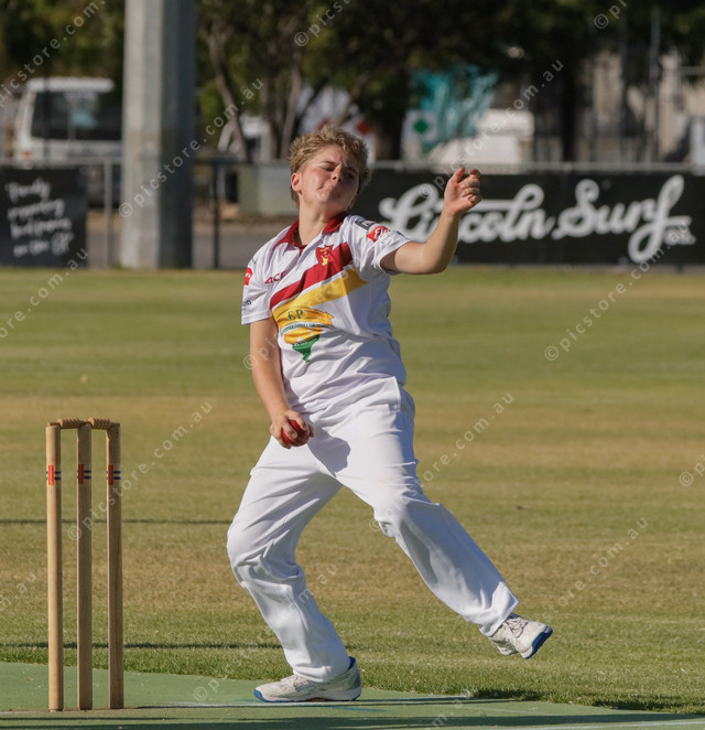 Jimmy Doudle on steps to bowl for Southern Eyre South senior colts. (457893_14)